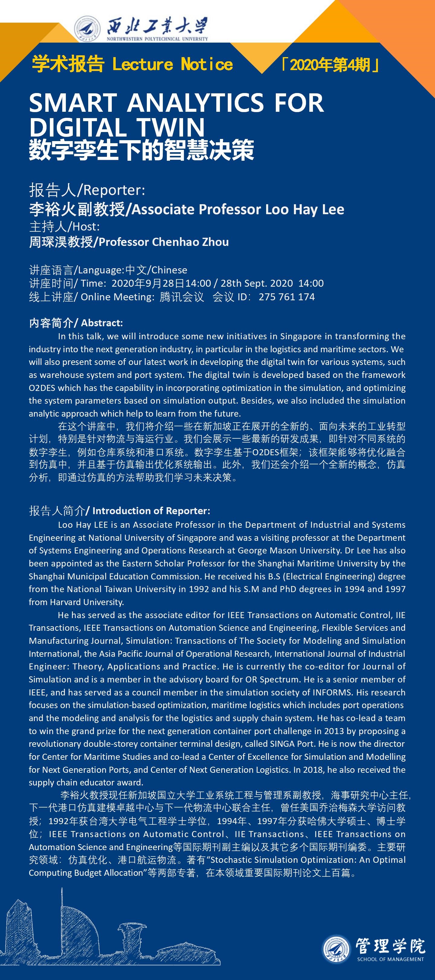 上一条:[学术报告]APPLICATION OF SMART DIGITAL TWINS WITH O2DES FRAMEWORK IN THE ERA OF INDUSTRY 4.0